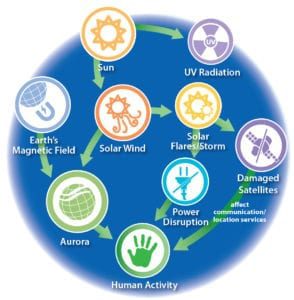 Over the course of two years, students, interns, and teachers were engaged using the personal relevance hook of ‘6 degrees’ through: 1) an SOS program with an associated arts-based creative activity; 2) an undergraduate internship program that included research related to interconnections of earth science; and 3) educator workshops that provided content training for teachers. An iterative program design process based on student and teacher evaluations resulted in the 6 Degrees of Connection program which discusses earth systems connections involving the sun, space weather, and ozone; transportation, atmosphere and acid rain; climate change; and marine debris. The program is purposefully interactive and multi-disciplinary – students are encouraged to consider the cascading effects related to the production and transportation of their clothing during an interactive activity using the SOS, an arts-based activity after the SOS program helps participants visualize and physically diagram their connections to global issues, and students learn about STEM careers from clips of STEM professionals discussing the ways their work is tied to various human and earth systems.