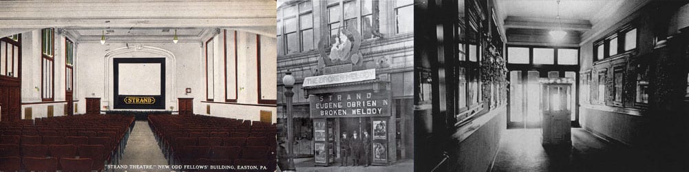 The Strand Theatre opened on May 8th of 1915 in the newly-constructed Odd Fellows Building at 518 Northampton Street. On the theatre’s program were recent silent films, then known as “photo dramas.” Surprisingly, the films often changed daily but were sometimes repeated months later. Click here for a list of movies shown at the Strand Theatre.