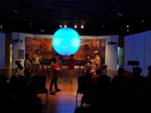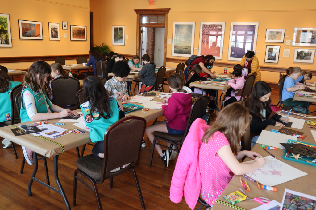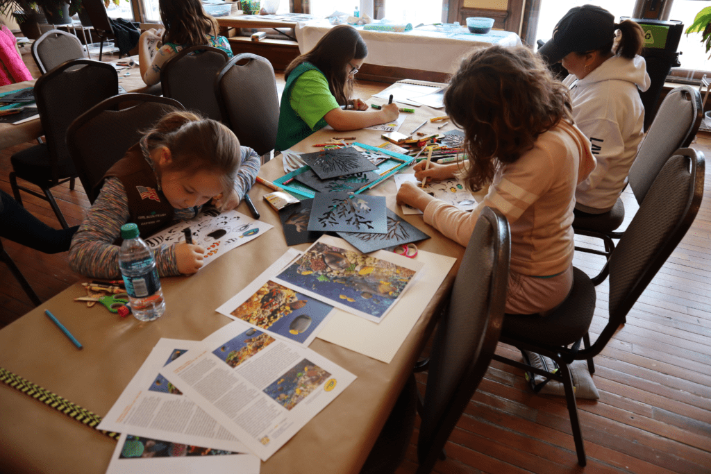 Girl Scouts participate in a creative exercise after seeing a Science on a Sphere show about corals.
