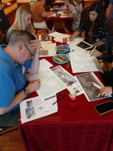 Teachers working on their data sketches during our Teacher Professional Development Workshop at the Nurture Nature Center in June 2023.