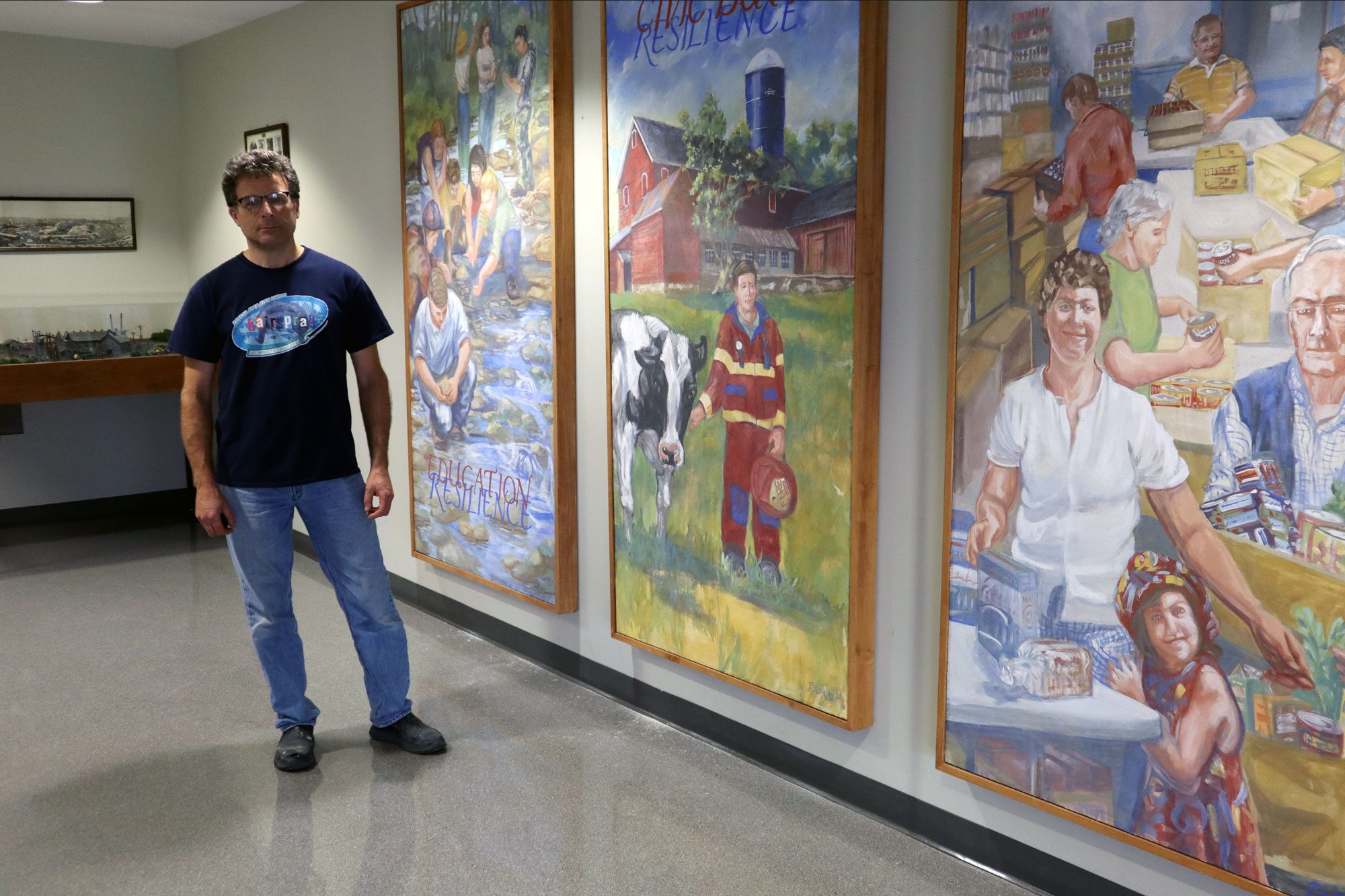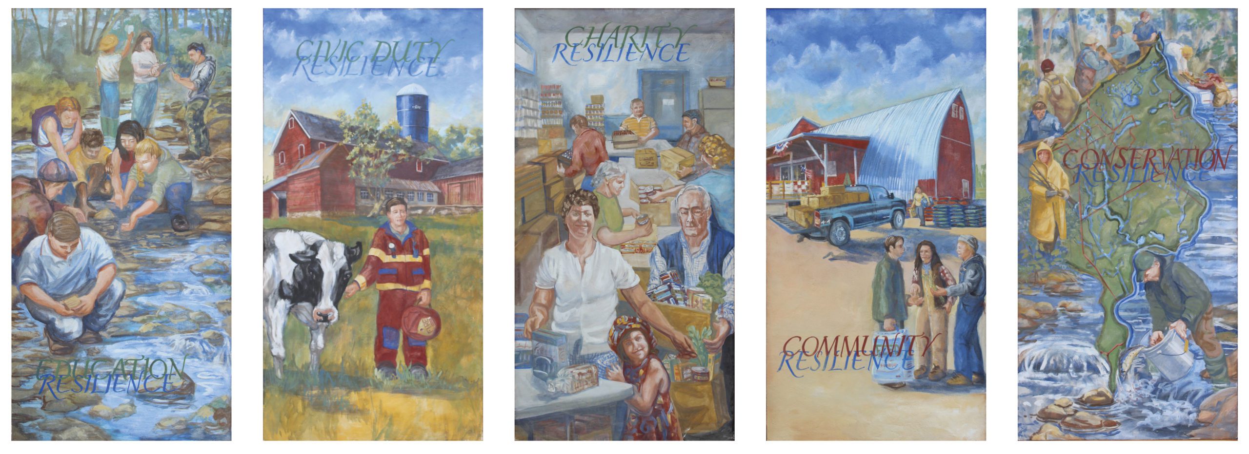 This mural is currently exhibited in the Alumni Hall at Bangor Area High School. Public access is limited/restricted due to the pandemic.