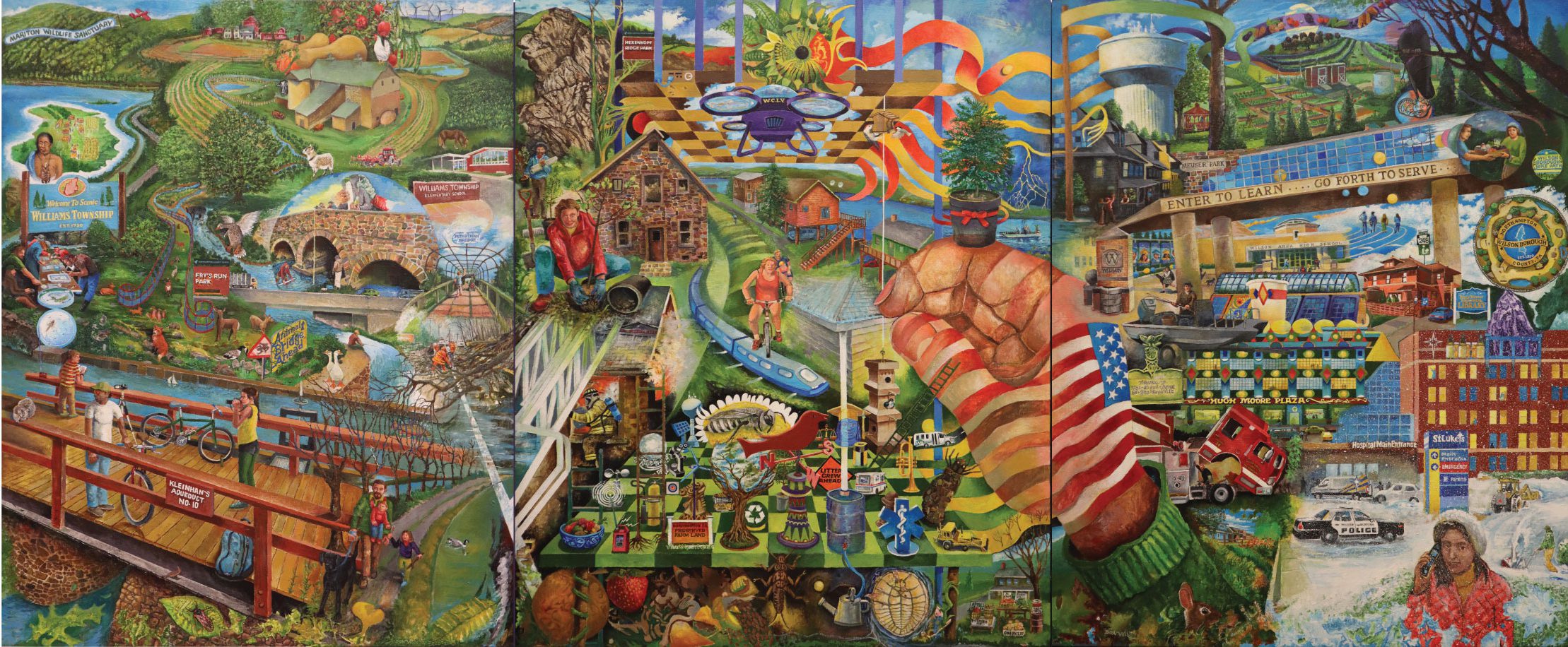 This mural is currently exhibited at Williams Township Municipal Building, 655 Cider Press Rd, Easton, PA 18042.