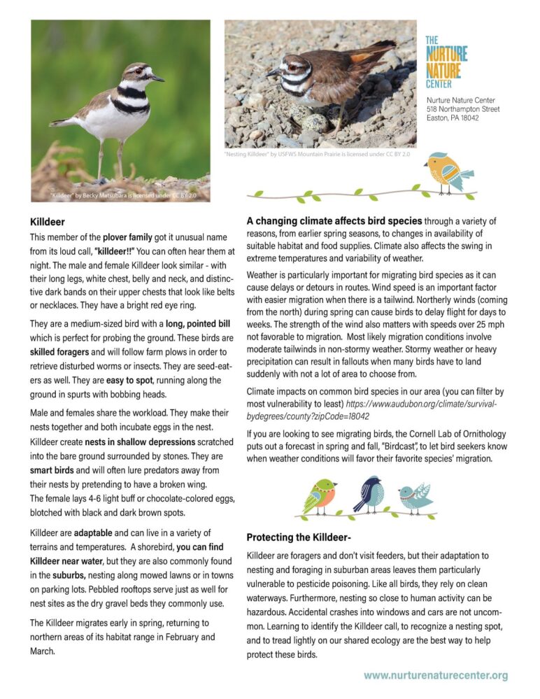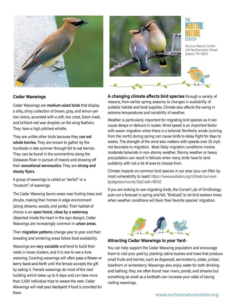 • information about the bird, its habits and how to support a healthy environment.