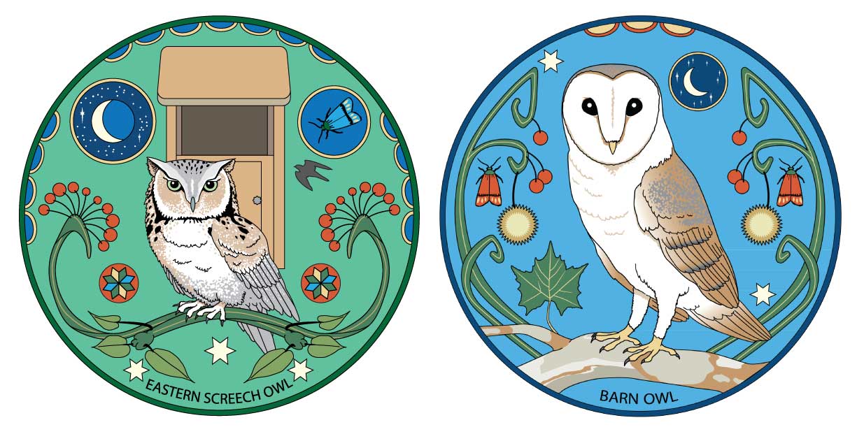 Our two newest designs feature an Eastern Screech Owl and a Barn Owl!