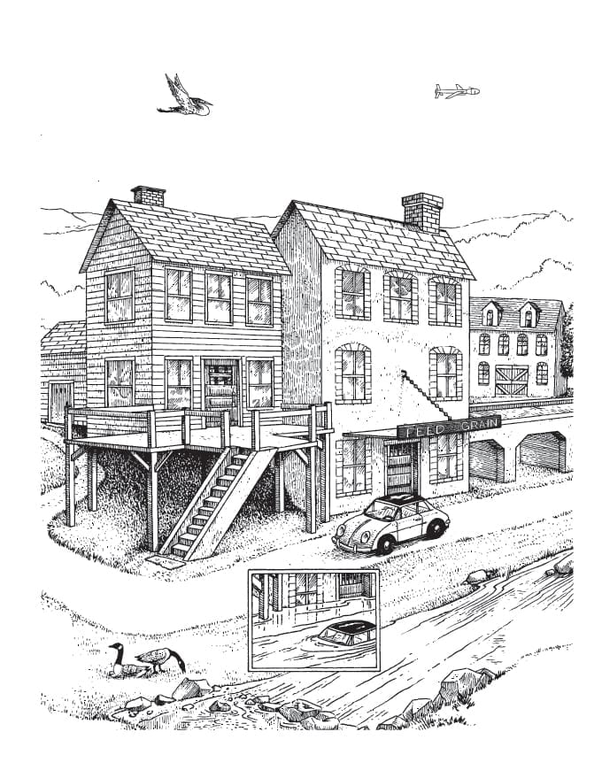 Living Local Mural Coloring Pages Flying and Swimming Animals Day and Nighttime Animals Living Along the River Sustainable Community