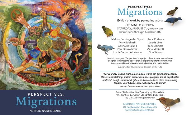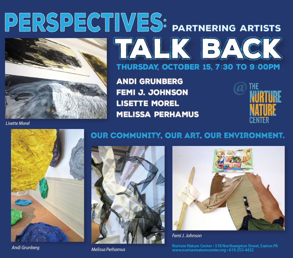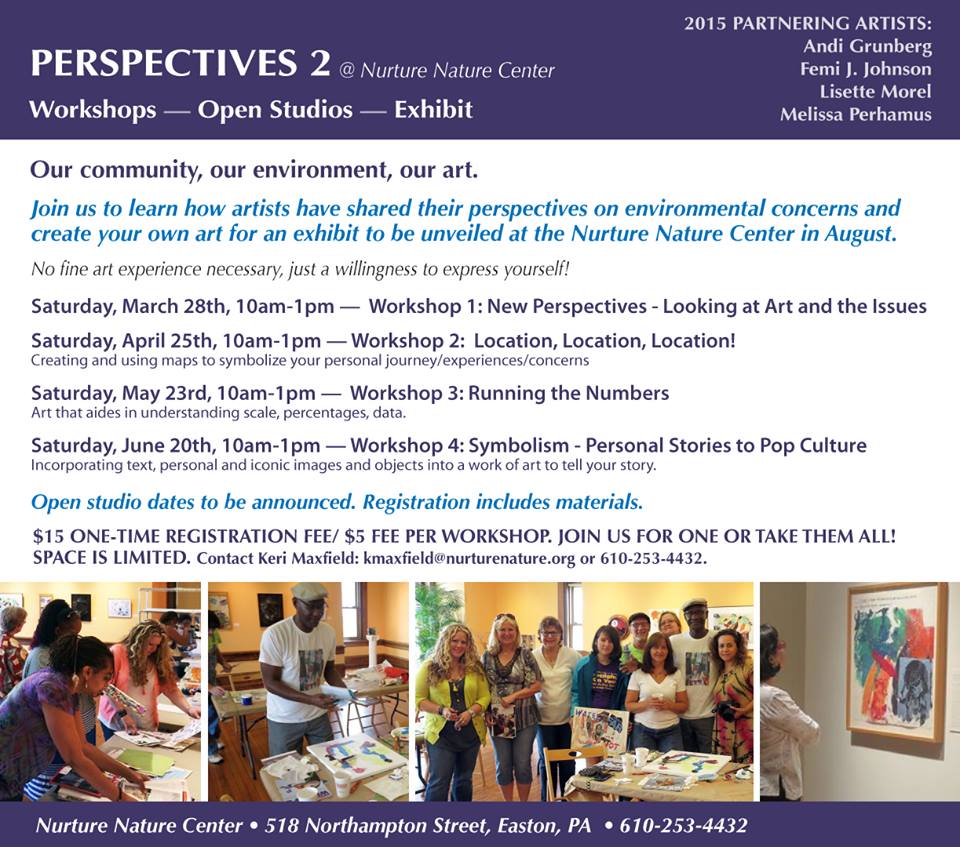 Perspectives is a project of the Nurture Nature Center designed to harness the power of art to explore important environmental issues, promote awareness and understanding, and inspire action. Artists, scientists, researchers and community members work collaboratively, exchanging experiences and ideas and strengthening personal, professional and community ties. The project results in expressive, science-informed art and provides participants new ways of seeing and relating to the world.