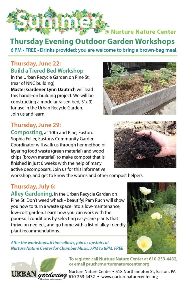 Did we miss your favorite topic? Share your input here on what workshops you would like to see next season at NNC’s Urban Recycle Garden.